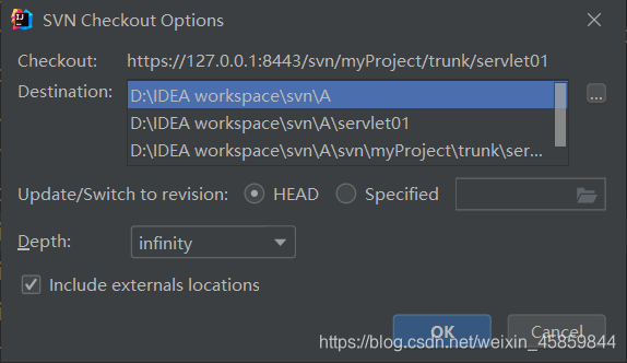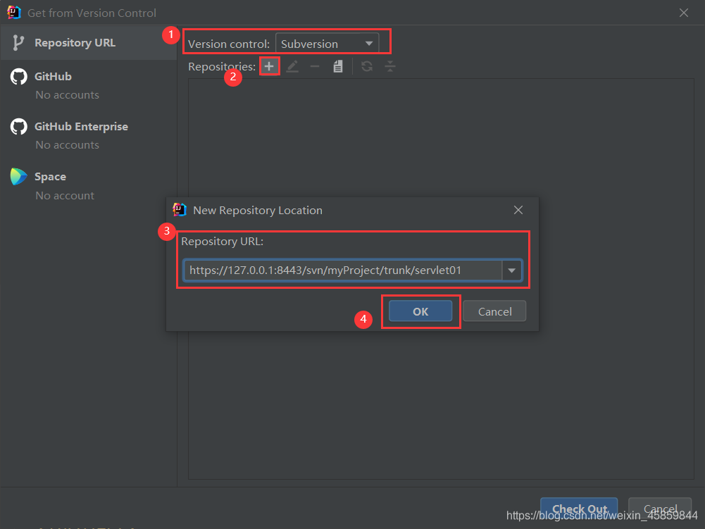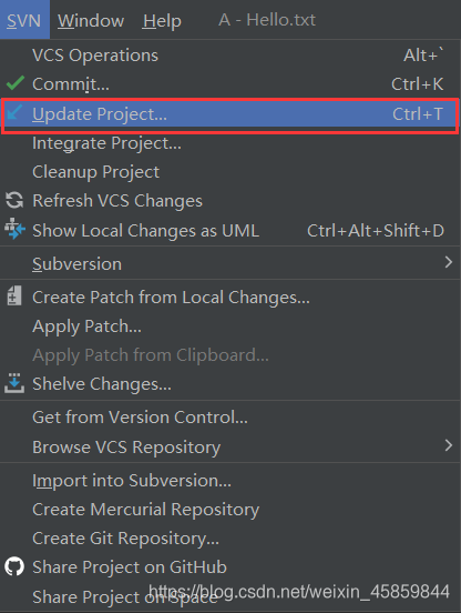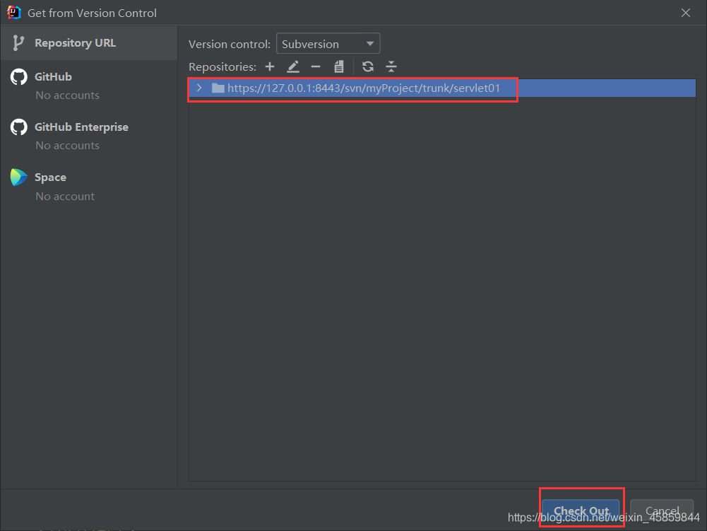 选择VCS -> Checkout from Version Control -> Subversion