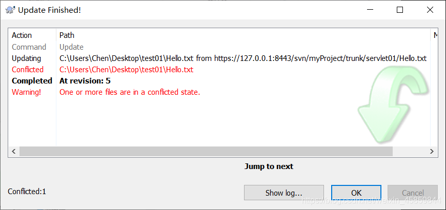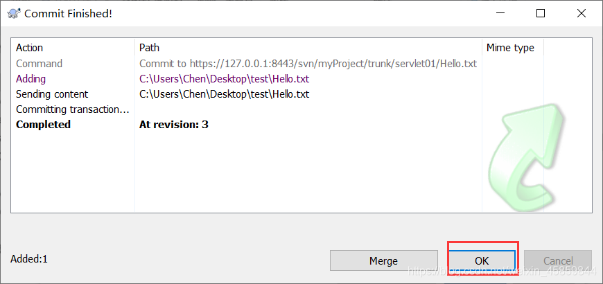 再次选择提交,成功解决冲突
