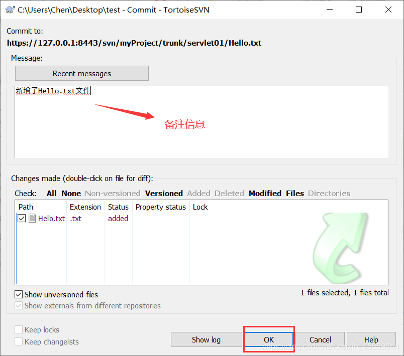在提交之前,你必须将文件/目录添加到待变更列表中。列表中记录了将会被提交的改动。当提交的时候,我们通常会提供一个注释来说明为什么会进行这些改动。这个注释也会成为版本库历史记录的一部分。Commit 是一个原子操作,也就是说要么完全提交成功,要么失败回滚。用户不会看到成功提交一半的情况。
