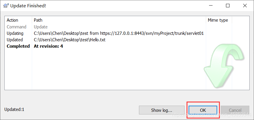 此时 Tom 的工作副本就过期了。更新操作将会从版本库中拉取 Jerry 的最新改动并将 Tom 的工作副本进行更新。