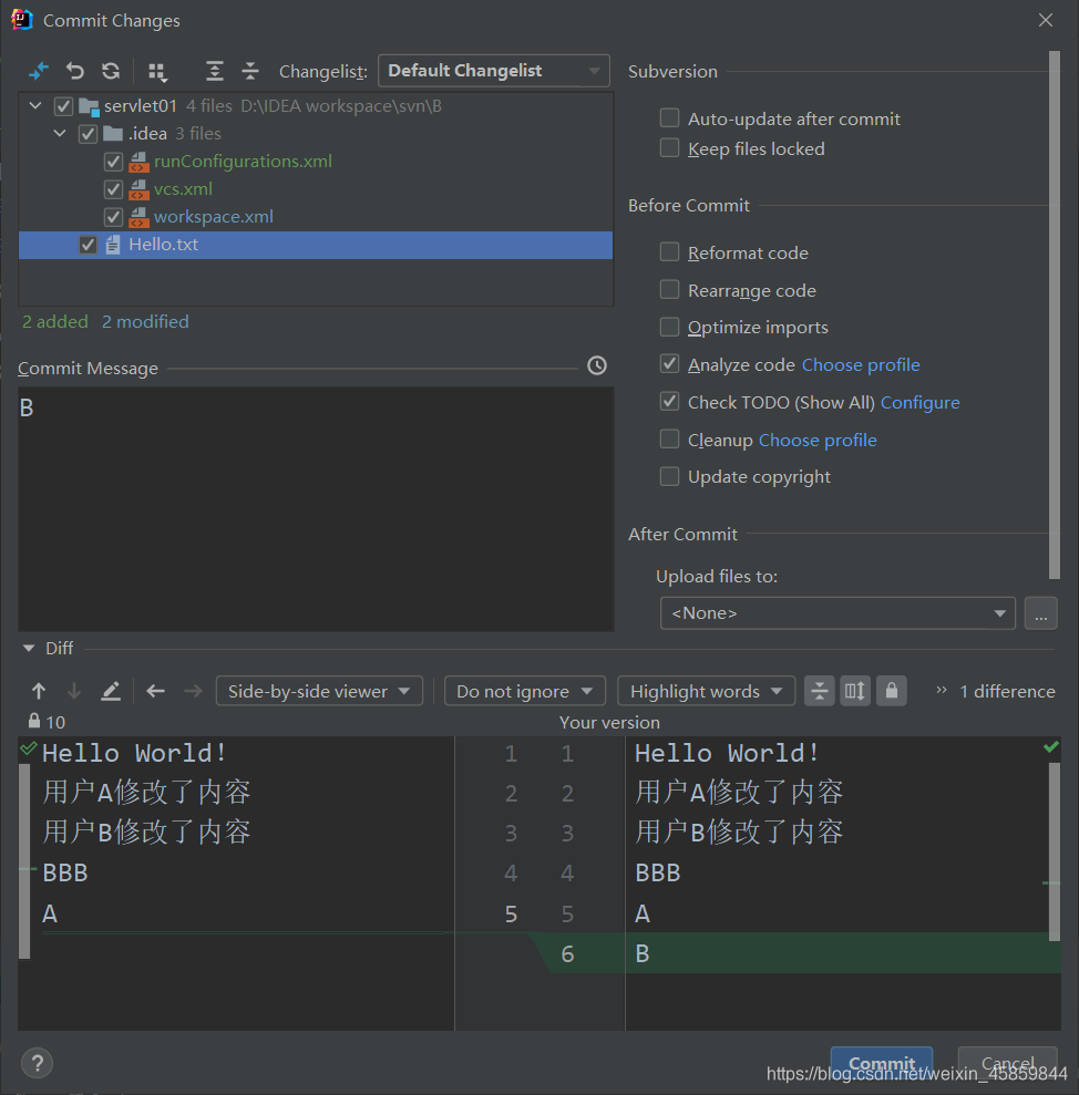 A、B都修改了同一个文件,A用户先提交。