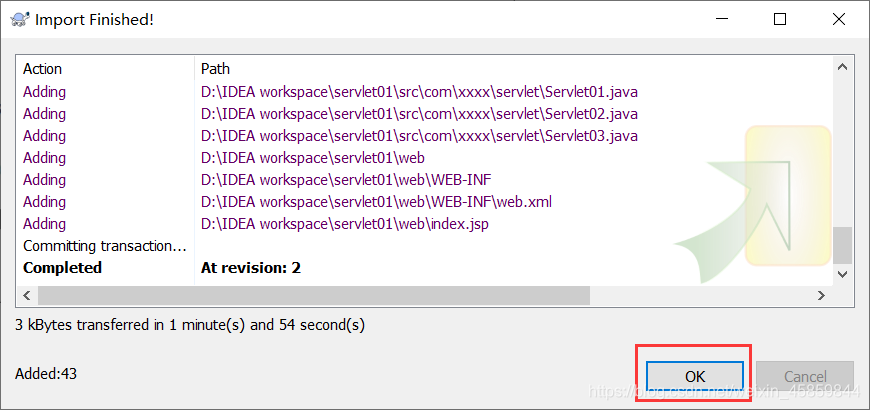 检查导入的路径,填写导入信息,选择OK