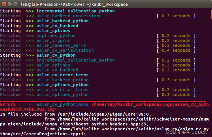 Errors << aslam_cv_python:make /home/lab/kalibr_workspace/logs/aslam_cv_python/build.make.002.log