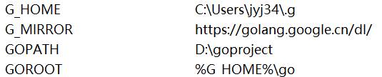 //配置g可执行文件g.exe、go可执行文件go.exe路径,这样可在全局,所有路径下执行g 或者 go 命令