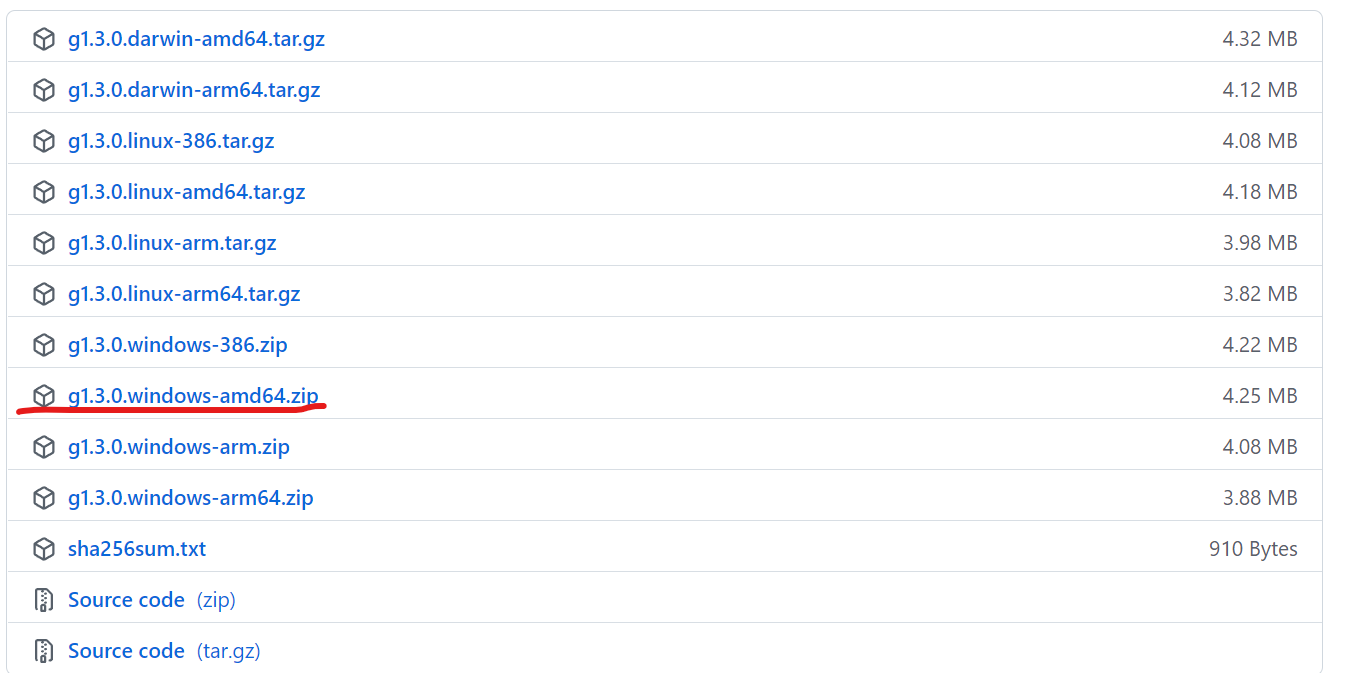 将已下载的 g1.3.0.windows-amd64.zip 解压到一个安装目录,比如 D:\g\g.exe