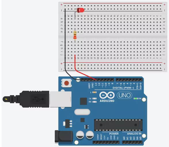 在这里,我们使用连接到引脚 13 的外部 LED。