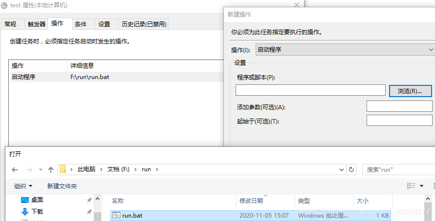 选择操作,新建操作,进行选择bat执行python发送邮件处理的脚本