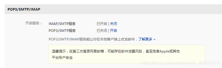 需要163或者QQ之类的邮箱开通SMTP服务,我用到的是163邮箱作为发送邮箱,在邮箱设置中开通POP3/SMTP服务,如图: