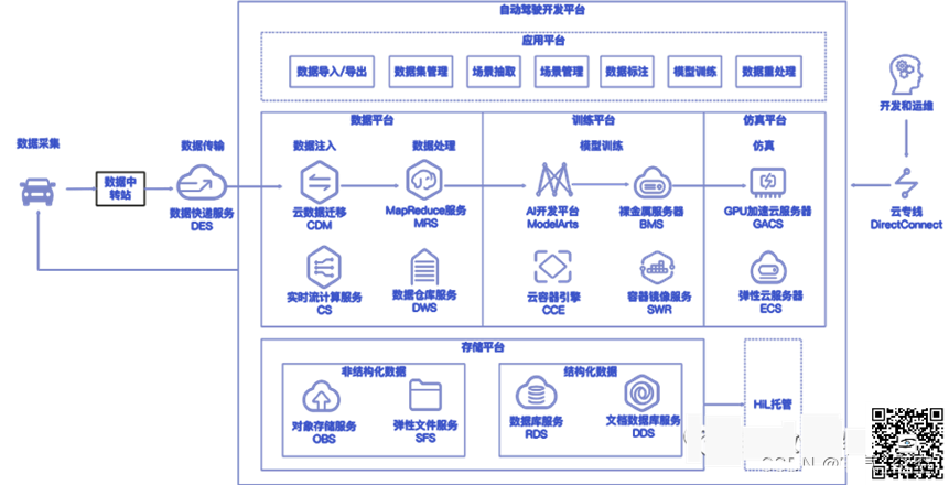 开发自动驾驶车辆采集、传输、存储和管理海量数据。华为云提供海量的、高度扩展能力的存储和计算能力,以及Hadoop、Spark等大数据组件和AI一站式开发平台,预集成数据预处理及半自动化标注算法,用户通过平台可高效完成自动驾驶模型按需训练和仿真测试,帮助用户降低开发环境基础设施部署复杂度和成本。