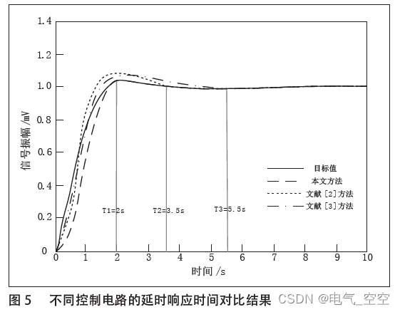 确定文中设计控制电路设计方法可行后,为了验证该控制电路与常规方法提出的控制电路相比,具有更优的瞬态控制性能,提出分别应用文献[2] 提出的基于GPRS 与STC 单片机的LED 显示屏控制电路、基于ATmegal6 微控制器的控制电路,执行相同的LED 显示屏控制要求,不同控制电路的延时响应时间统计结果如图5 所示。