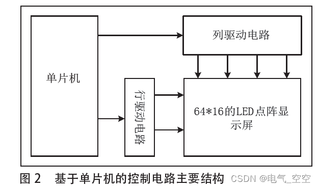 在控制电路设计过程中,文中提出将单片机添加到驱动电路中,使其分别与行驱动电路、列驱动电路连接,最终形成图2 所示的基于单片机的控制电路。
