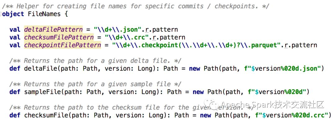如下FileNames类用来管理_delta_log文件夹下相关文件的文件名