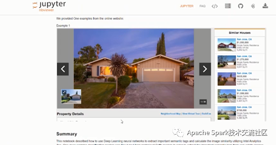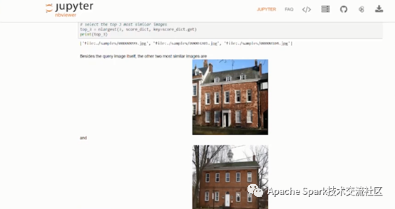 下面介绍Image similarity的例子。客户主要做房产交易,它们的一种业务场景是为用户推荐房子。最开始还是需要sc=init_nncontext() 初始化环境,使用NNImageReader将图片读取到Spark中,定义模型,加载模型,再使用NNEstimater集成Analytics Zoo。