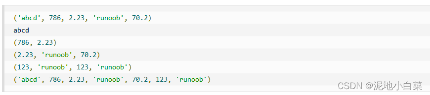 元组和字符串类似,可以被索引且下标索引从0开始,-1为从末尾开始的位置,也可以进行截取