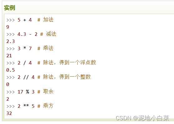 c.数值的除法包括两个运算符:/返回一个浮点数,//返回一个整数