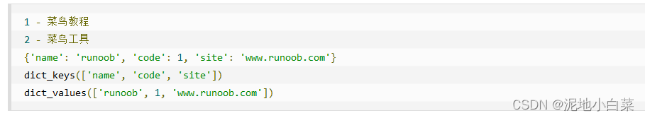 其中第二行表达式使用的是字典推导式,详情见:Python 推导式 | 菜鸟教程