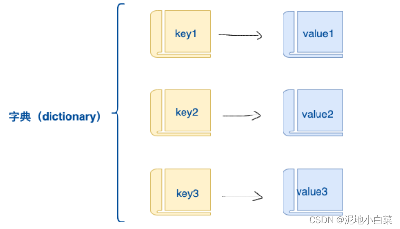 注意:dict作为Python的关键字和内置函数,变量名不建议命名为dict
