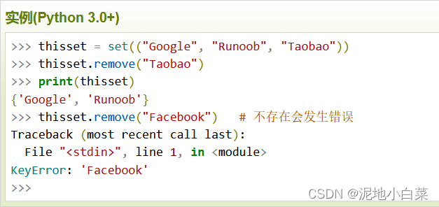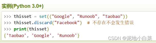 此外还有一个方法也是移除集合中的元素,且如果元素不存在,不会发生错误,格式如下: