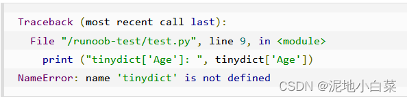 但这会引发一个异常,因为用执行del操作后字典不再存在: