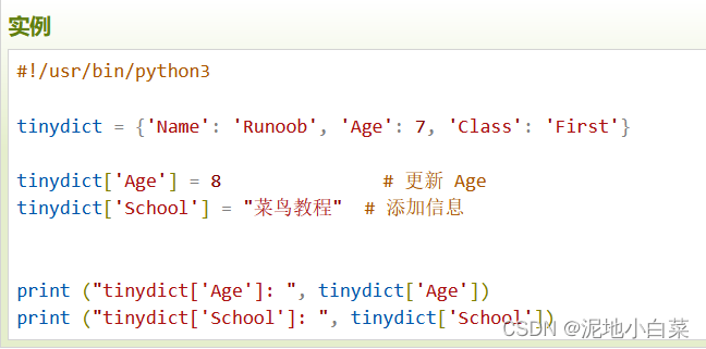 向字典添加新内容的方法是增加新的键值对,修改或删除已有键值对如下实例: