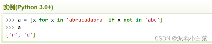 类似列表推导式,同样集合支持集合推导式(Set comprehension):