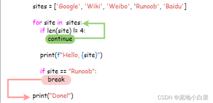 Python for循环可以遍历任何可迭代对象,入一个列表或者一个字符串