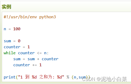 以下实力使用了while来计算1到100的总和:
