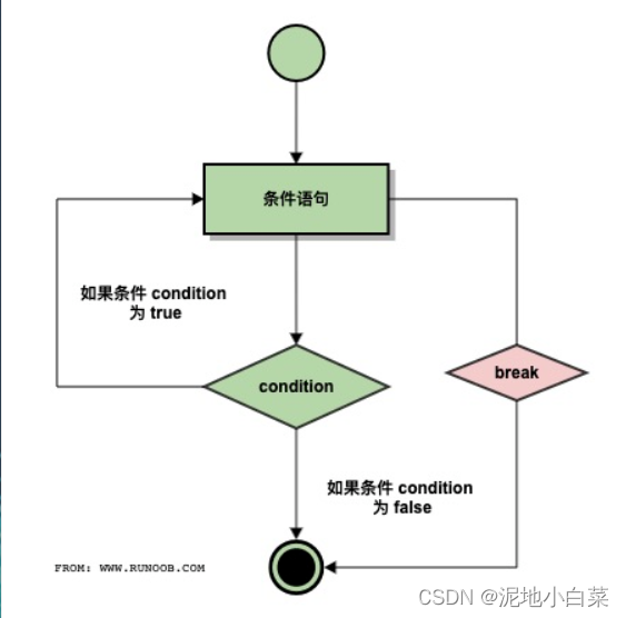 while中使用break: