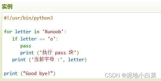以下实例在字母为o时执行pass语句块: