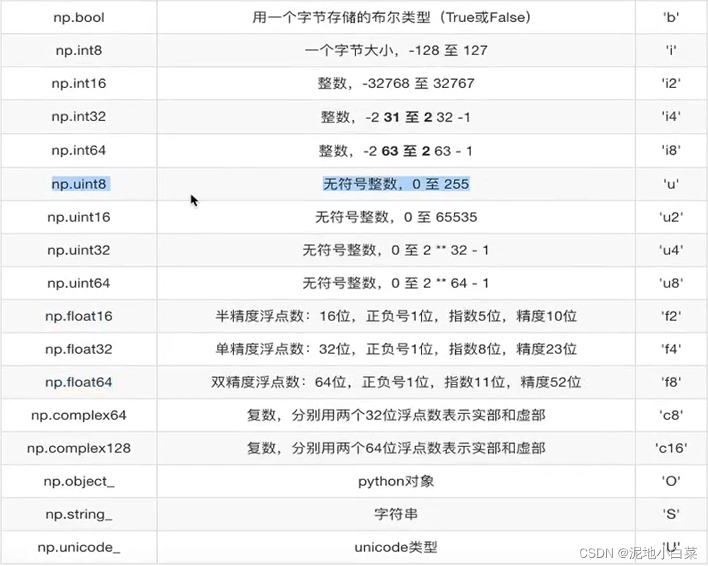 在创建ndarray的时候,如果没有指定类型,默认类型是int64(如果数据类型是整型),如果数据类型是浮点型&