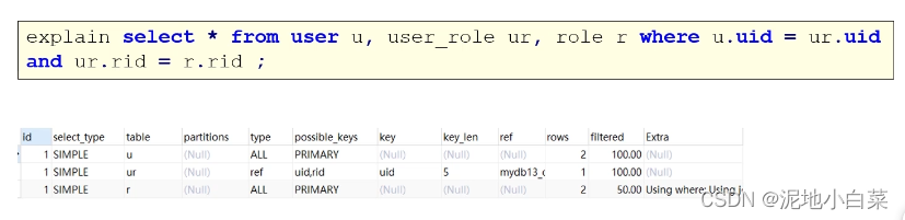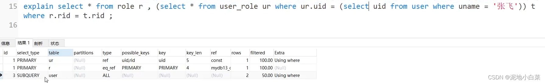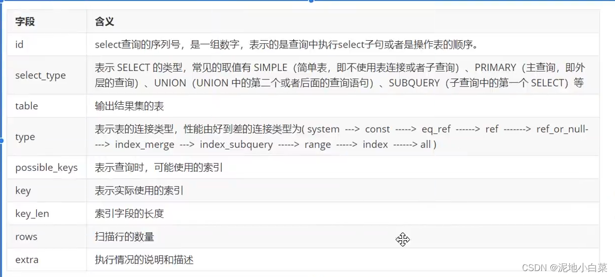 关于explain的字段解释: