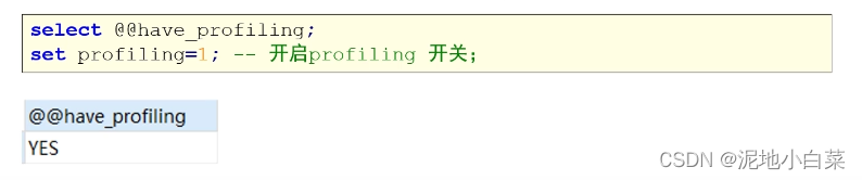 通过have_profile参数,能够看到当前MySQL是否支持profile: