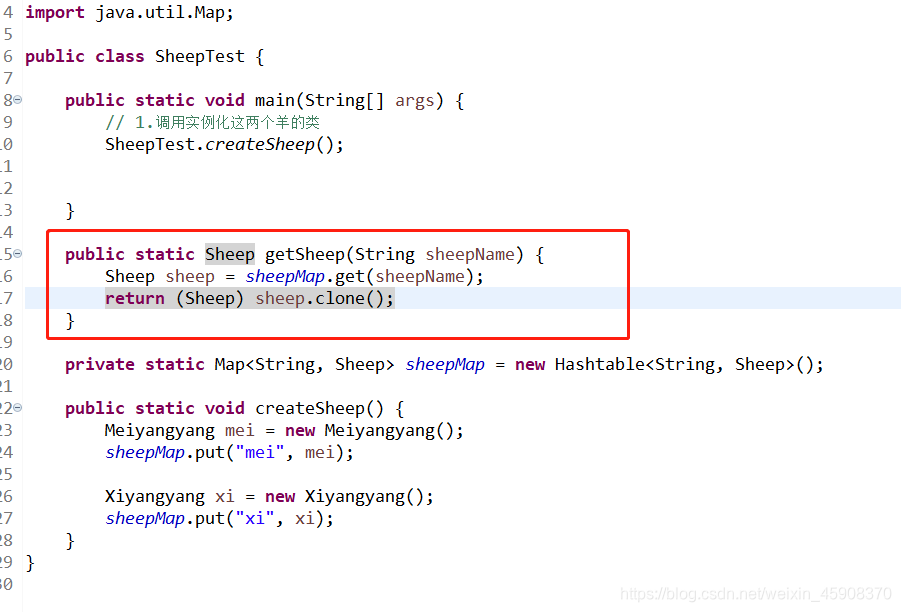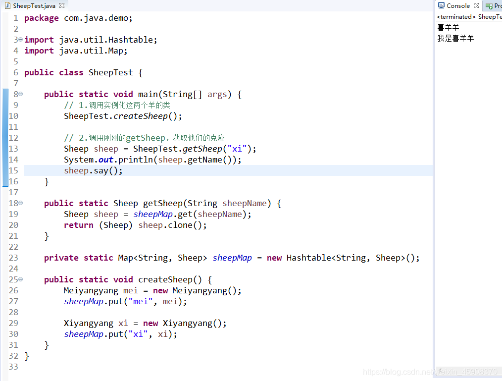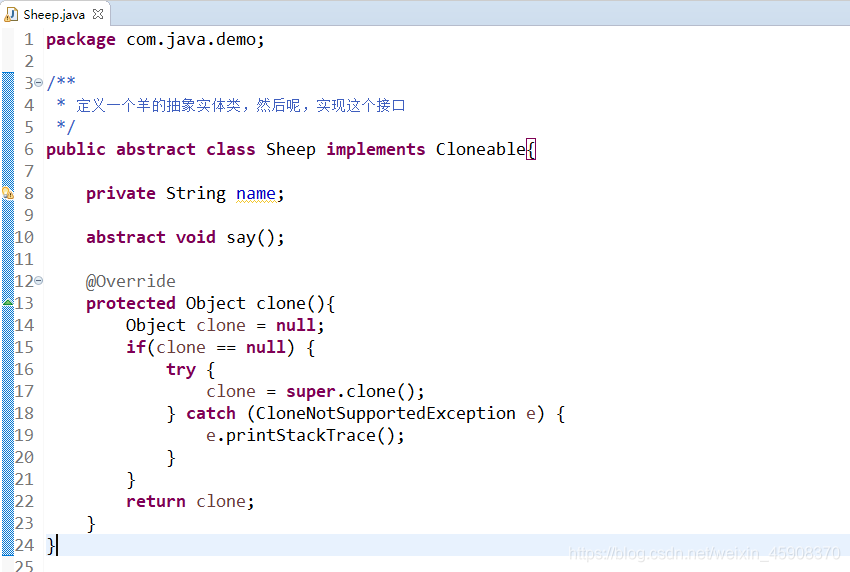 1.首先定义一个羊这么个抽象类,然后让这个羊类实现克隆。