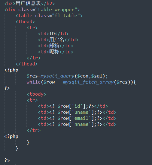 剩下最后一个user_main.php就是显示信息的页面了。这里可以看到在数据库中是把所有的字段都给查出来。