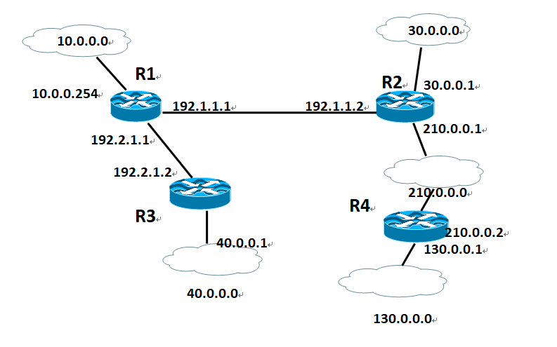 (2)210.0.0.0网络通过两个边界路由器与R2和R4相连。