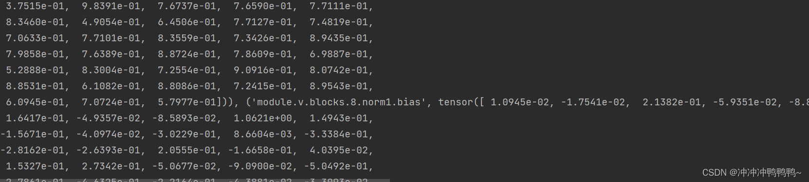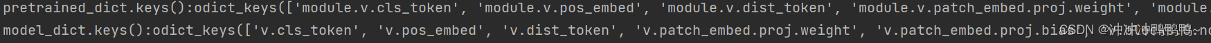 ⭐由于pretrained_dict和mode_dict的keys()相差一个"moudle.",所以“#去除不需要的参数”的代码中k后加上了[7:],若两者的keys()相同,则不需要加。本例子中的pretrained_dict和mode_dict的keys()输出如下: