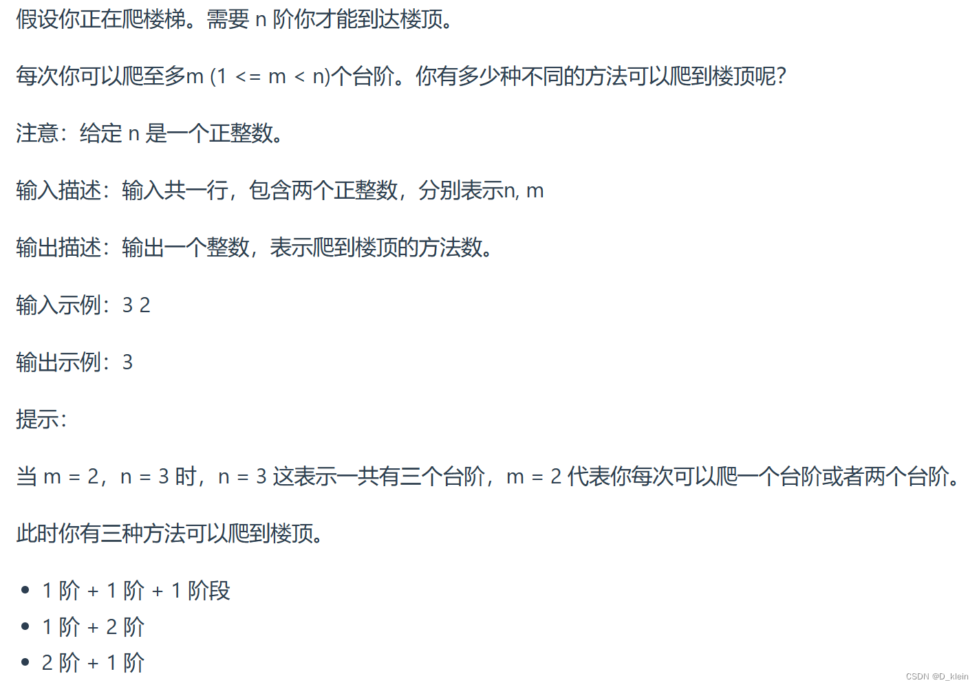 【代码随想录】【动态规划】day45:● 70. 爬楼梯 (进阶) ● 322. 零钱兑换 ● 279.完全平方数 思路:在1-m步中任意选取,组成target为n的所有组合数所以,该问题就变成了完全背包的排列问题。