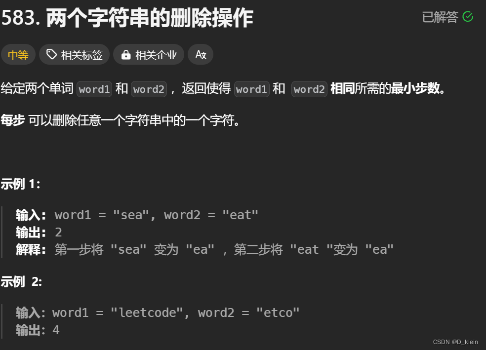 【代码随想录】【动态规划】day56:● 583. 两个字符串的删除操作 ● 72. 编辑距离 ● 编辑距离总结篇 增加删除其实是一样的操作,在word1上增加相当于在word2上删除。替换就是在dp[i-1][j-1]的基础上+1。