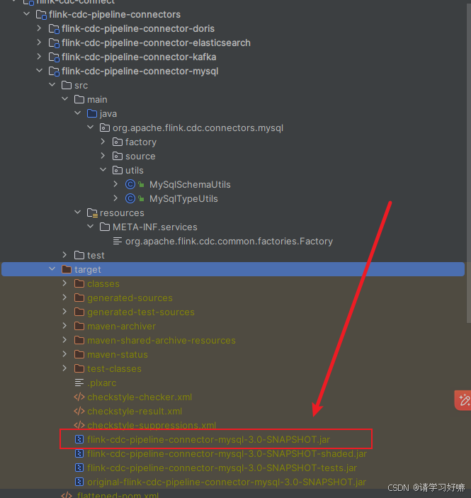 4、在flink-cdc-connect的taget目录下找到jar包: