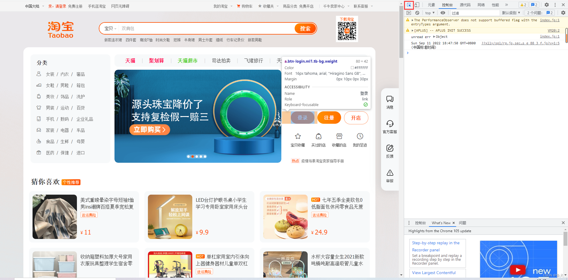 对淘宝秒杀程序的实践【2022.9】 程序能跑,但是抢热门商品的成功率为0%QAQ但往非功利的角度来看(对对对我在试图安慰我自己QWQ),这一次的实践中浅尝了一下爬虫,也学会了怎么F12以后审查元素,要想用鼠标指哪就能定位到哪里,需要点一个按钮。需要到点反复刷新失效的宝贝界面,等客服人工上货以后才能买到的那种秒杀。