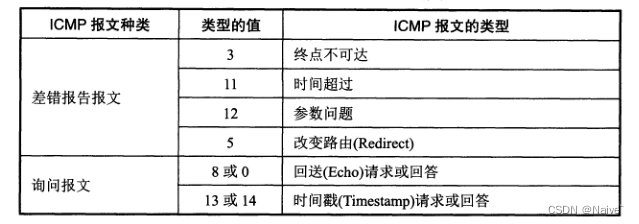 ICMP报文的种类有两种,即ICMP差错报告报文和ICMP询问报文