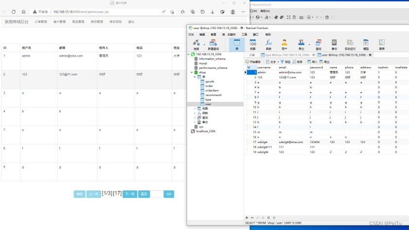 测试连接:(用数据库工具或者浏览器直接访问的形式也行与访问tomcat类似但是界面不同)