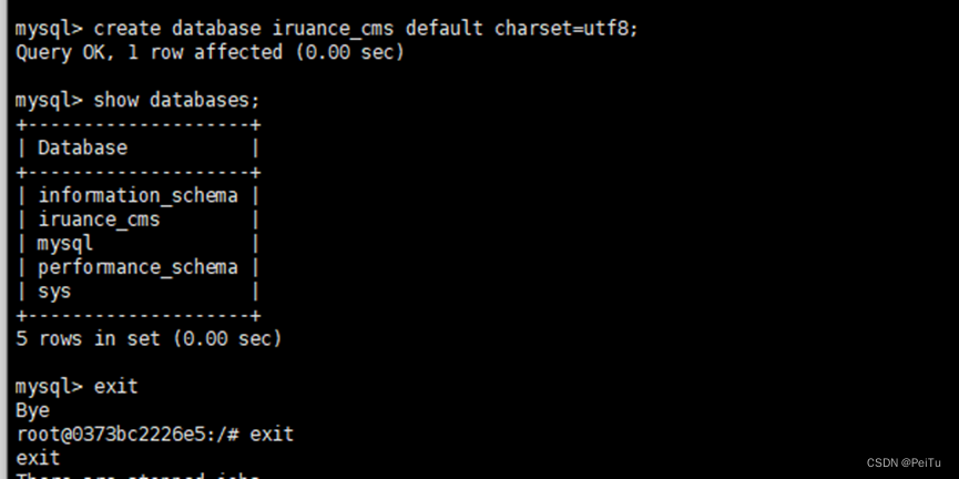 6、运行进入mysql并创建一个数据库:(新建的数据主要用于导入.sql文件命名时需要与你war包数据库名字相同)