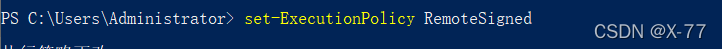 第二步:以管理员身份运行该程序,并且输入set-ExecutionPolicy RemoteSigned