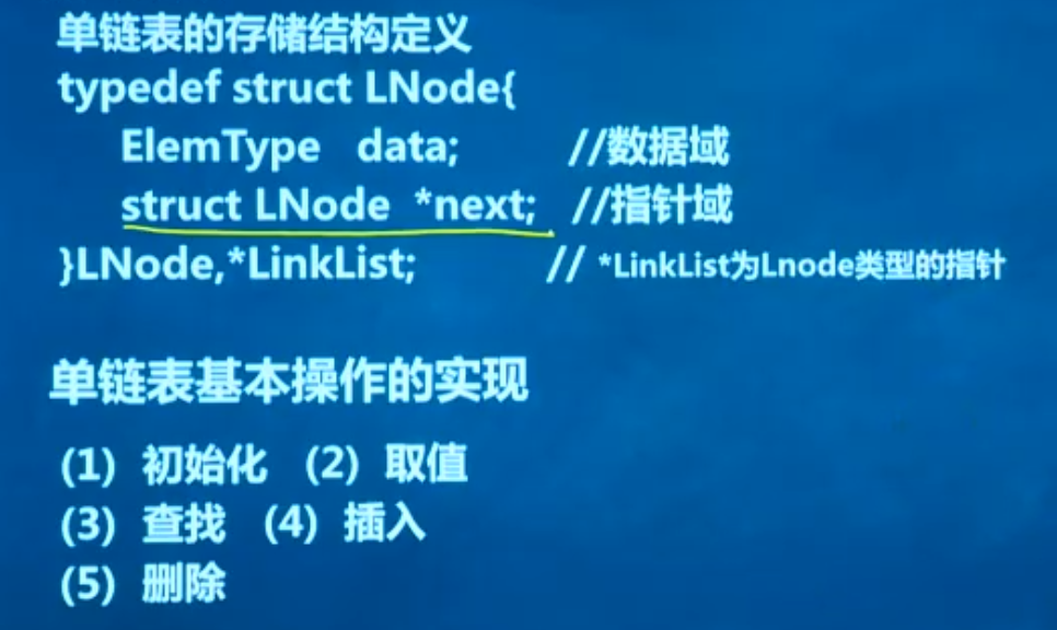 单链表的存储结构定义