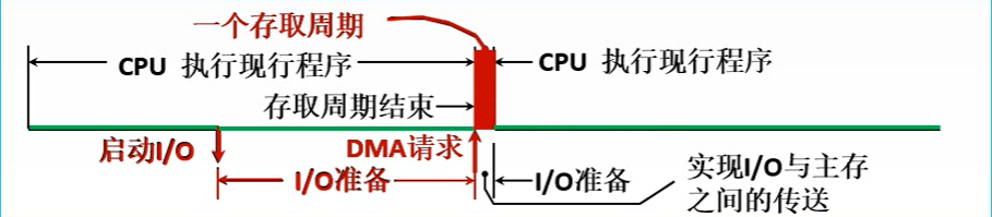 - 周期挪用(周期窃取):I/O设备需要访存时,揶用一个或几个存取周期