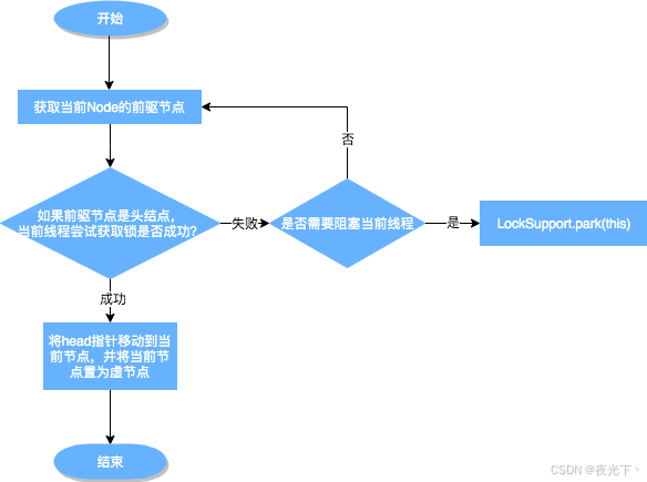 - 或者((ws = pred.waitStatus) != Node.SIGNAL 并且 (ws >0 || compareAndSetWaitStatus(pred, ws, Node.SIGNAL) == false)):ws这里取前置节点的状态,翻译过来就是前置节点是取消节点或者compareAndSetWaitStatus失败,而compareAndSetWaitStatus失败则发生在高并发时,前置线程突然释放锁;