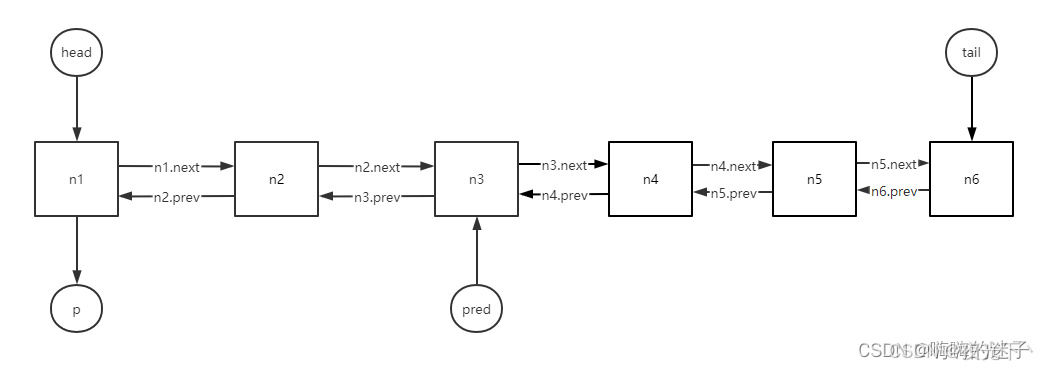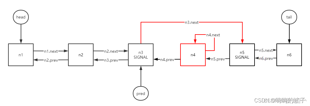 - pred == head或者pred.thread == null,这两个其实含义差不多,都暗示了,自己是第一个节点,也就是取消了n1节点;