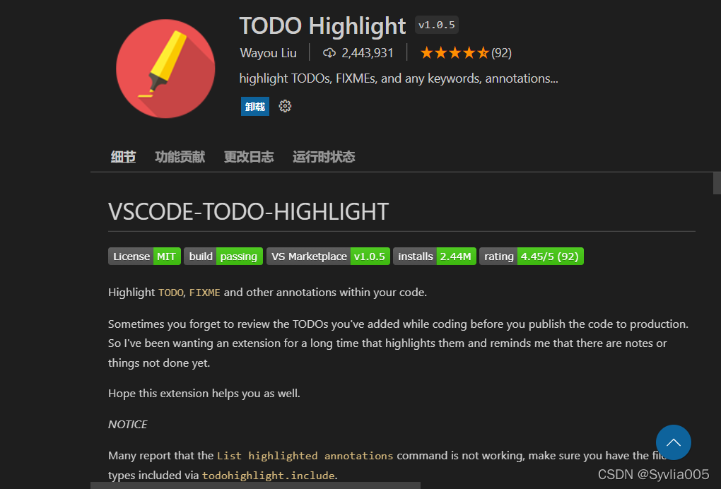 使用: 按F1之后,输入Todohighlist,选择相关的命令。高亮TODO/FIXME或者列出全部的TODO,就可以了。操作相当的简单。