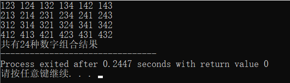 作业3:利用数字1、2、3、4自由组合3位数字,要求数字不能相同